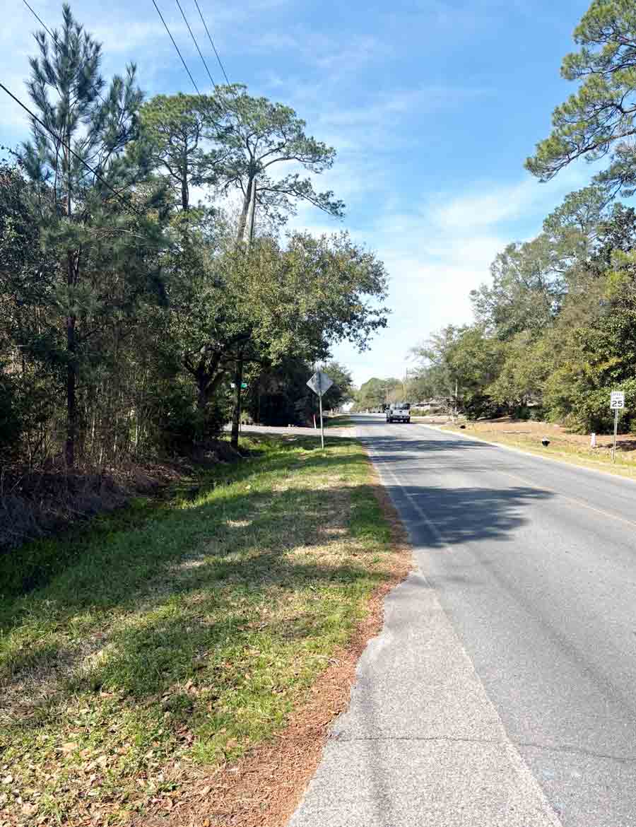 View of Valparaiso Boulevard showing the narrow shoulder where a new sidewalk is planned in Niceville.