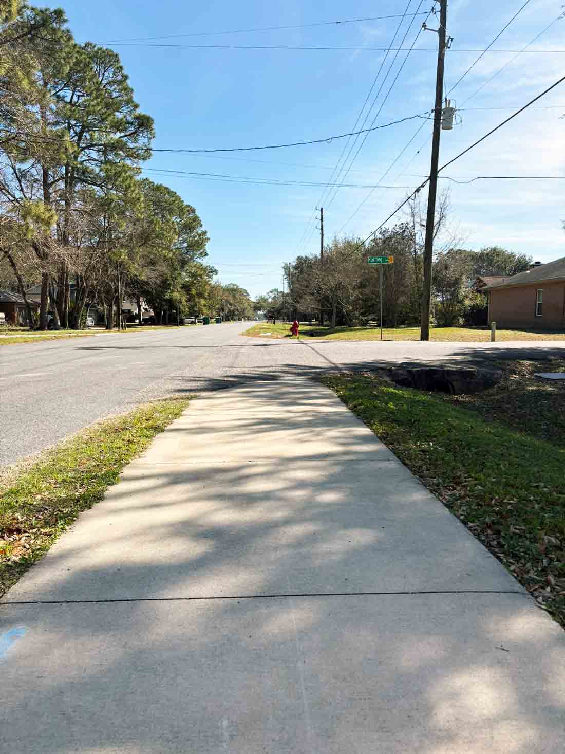 Sidewalk along Valparaiso Boulevard near Nutmeg Avenue in Niceville.